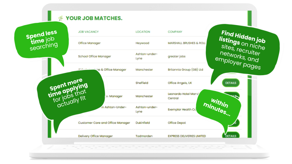 Job hunting can be time-consuming and overwhelming. Our Job Hub acts as a smart search assistant that scans trusted UK job sites in real time, pulling relevant listings into one place. Users can search by location, role type, sector, and keywords—saving time hopping between multiple platforms.