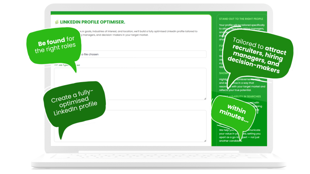First impressions count and in today’s market, your LinkedIn profile is often your first. The LinkedIn Optimiser tool helps jobseekers build a strong, keyword-rich profile that gets found by recruiters and resonates with potential employers.